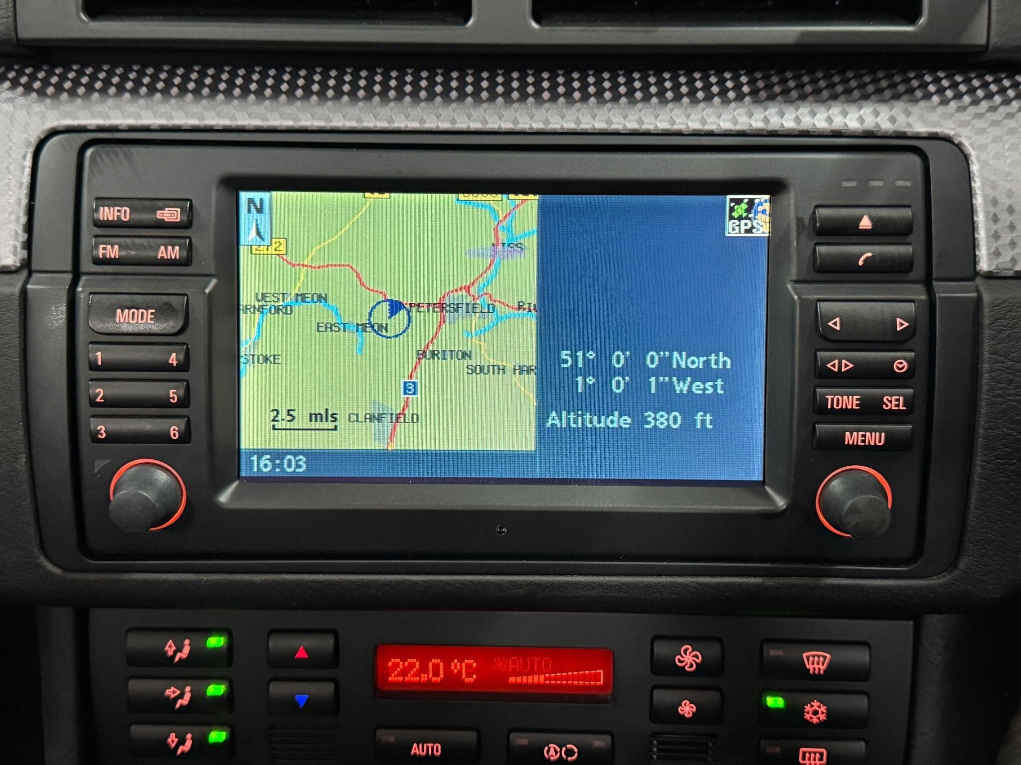 The immaculate interior is finished in Black Montana Leather contrasting with the Aluminium Cube Trim, the Professional Navigation System comes complete with 6.5” monitor with single CD drive and TV Tuner, this is complemented by the optional Harman Kardon Hi-Fi system which comes with 11 speakers with a 200watt amp. The exterior M Sports styling is completed by the 18” Sport Spoke Light Alloy Wheels.